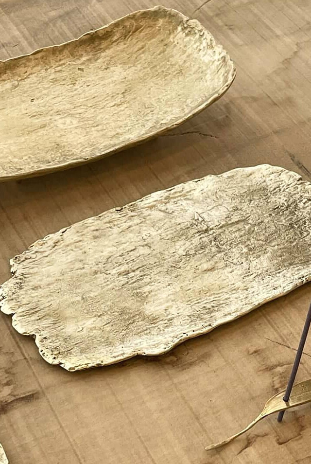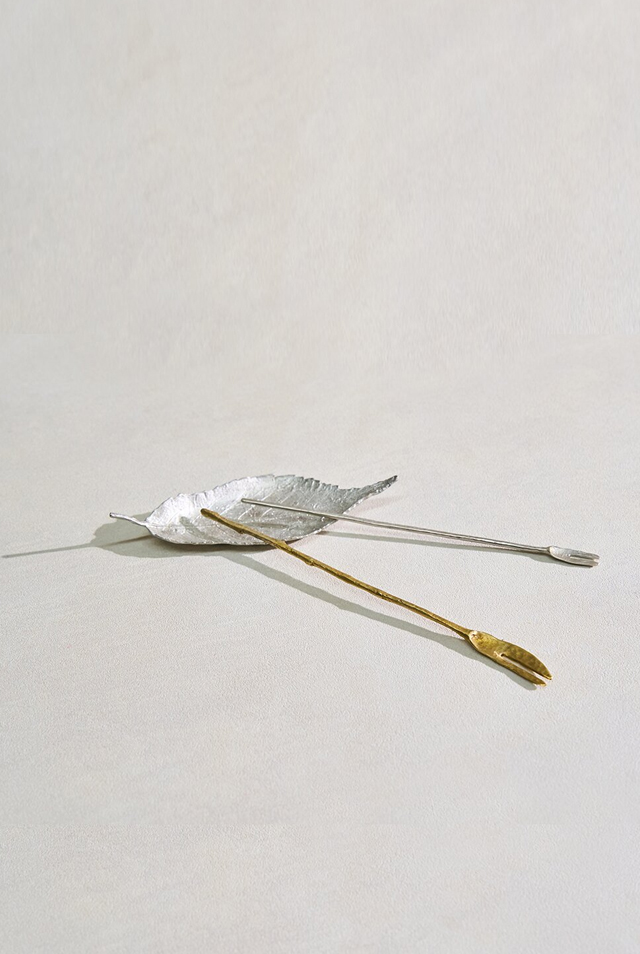 돌의 표면을 떠내어 은으로 만든 비정형의 기물. 포크 또는 차시로 사용합니다.
