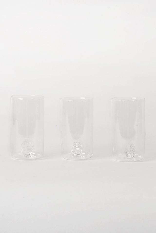 영원히 녹지 않는 얼음을 테마로 완성한 'A Piece of Ice' 시리즈. 커다란 유리 덩어리를 깨뜨려 나온 파편의 거칠고 날카로운 면을 다듬어 만든 얼음 형태의 유리 조각을 접시, 잔 등에 접목했습니다.