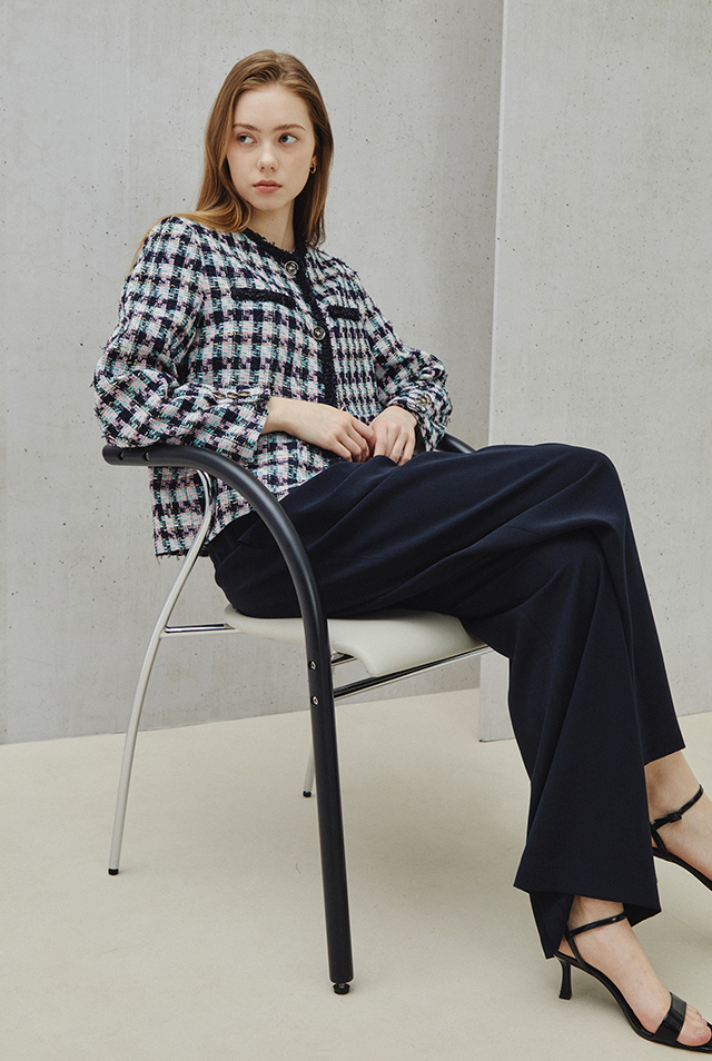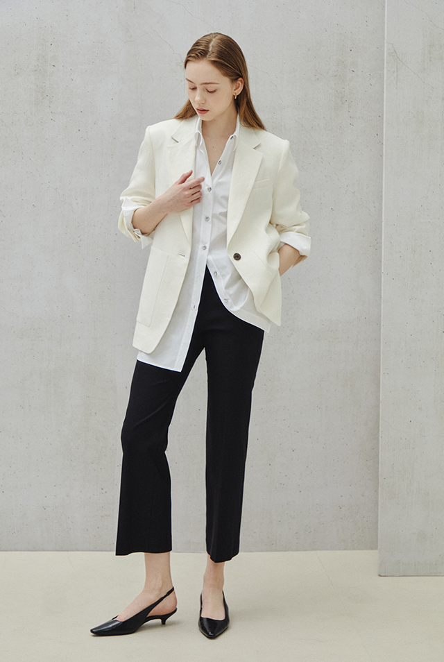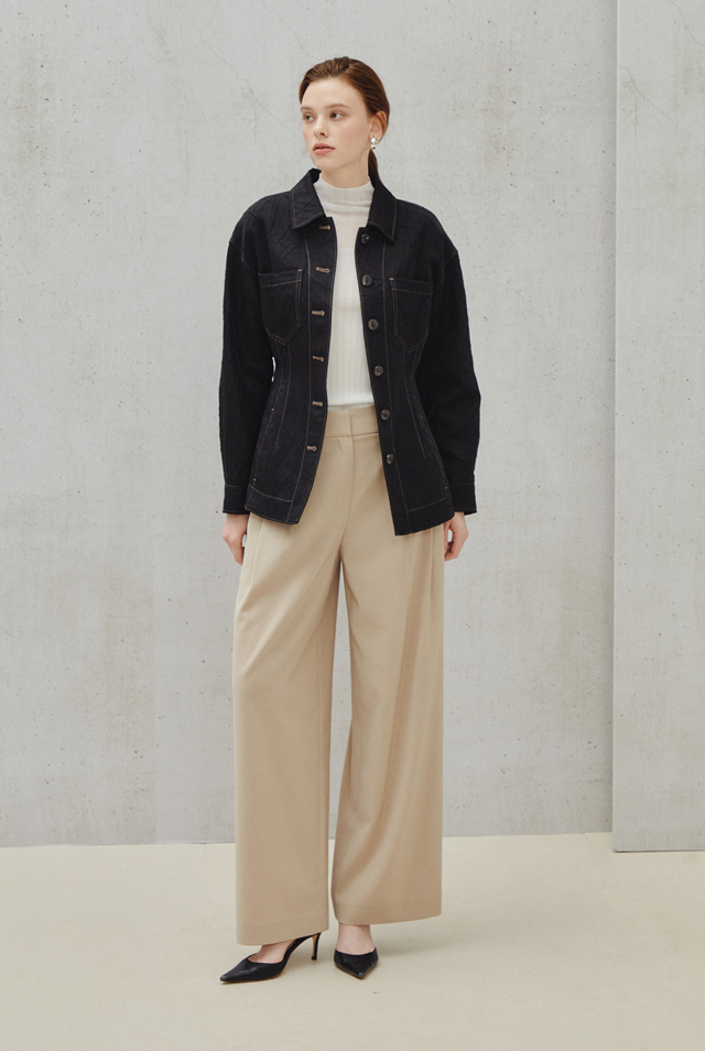 모던한 테일러드 워드로브에 과감한 대비는 차별화된 표면감의 소재로 도시적 구조미를 완성한다.